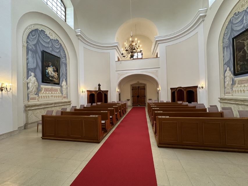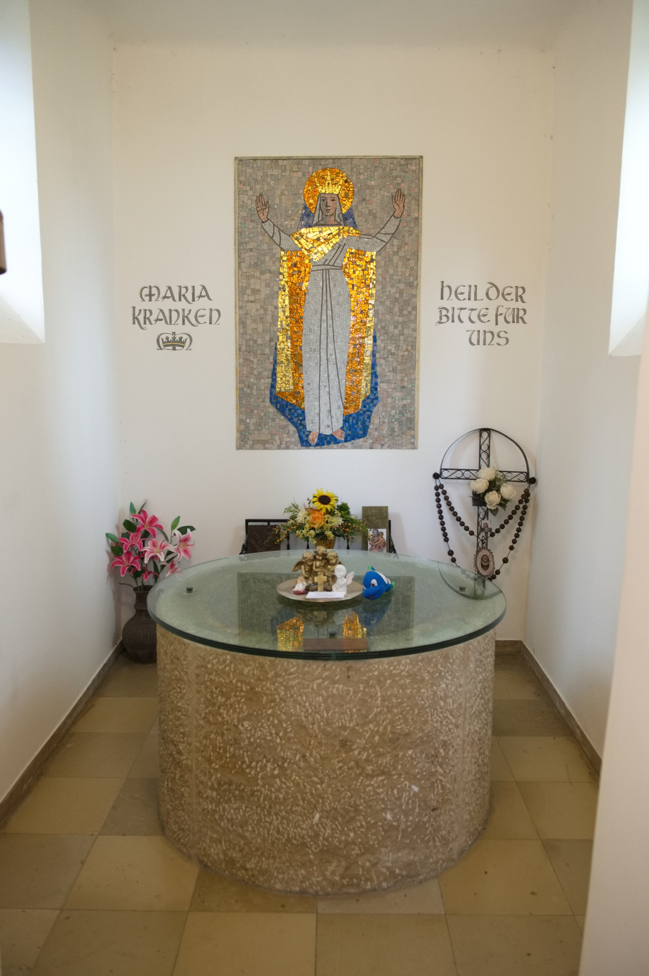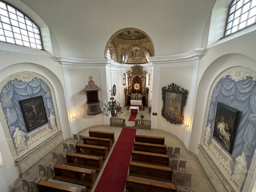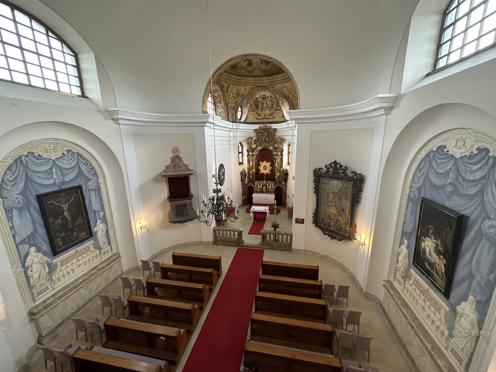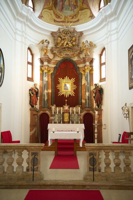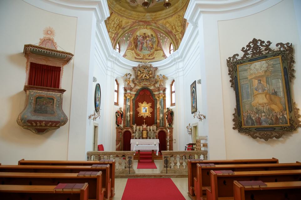 Das Innere der Kirche ist quadratisch mit abgerundeten Ecken und wird von einer Flachkuppel überspannt. Im Westen befindet sich eine Orgelempore. An den Zentralraum schließt sich im Osten der Chor mit einer kunstvoll gestalteten Kuppel und einer halbkreisförmigen Apsis an. Die Deckenmalereien sind aufwendig gestaltet und tragen zur besonderen Atmosphäre des Raumes bei.Die Kirche Maria Bründl gehört der Gemeinde und steht seit 2002 unter Denkmalschutz. Besonders große Restaurierungen fanden in den Jahren 1968–1969 und 1987–1991 statt. Bei der letzten großen Renovierung wurden Dach, Fenster, Innenraum und Fassade erneuert. Am 8. September 1991 wurde die frisch restaurierte Kirche von Bischof Florian Kuntner erneut geweiht.