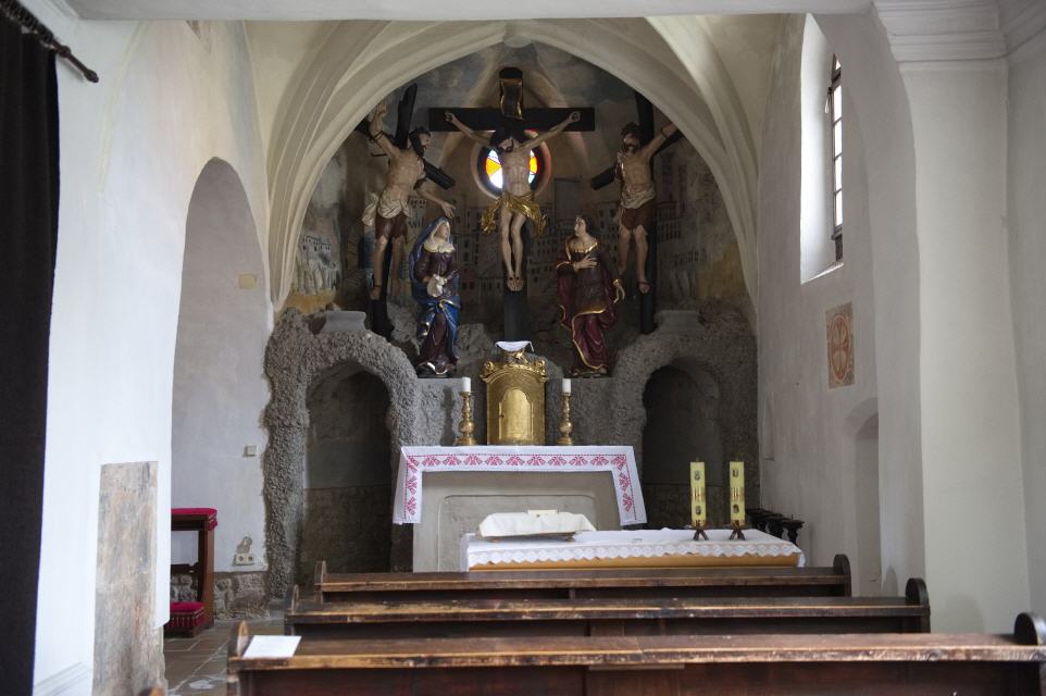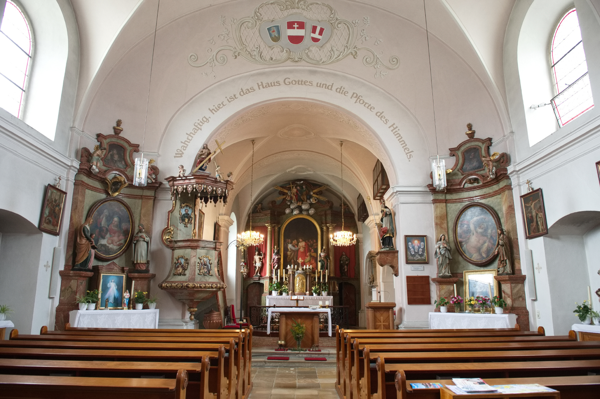 Im Inneren der Kirche gibt es ein großes, lichtdurchflutetes Hauptschiff mit abgerundeten Ecken und einer gewölbten Decke. Im Westen befindet sich eine Empore, die von kräftigen Säulen getragen wird. Ein großer Bogen verbindet das Hauptschiff mit dem Chor, der etwas niedriger ist und ebenfalls eine gewölbte Decke besitzt. Direkt dahinter liegt das alte Turmerdgeschoss mit einem Tonnengewölbe. In der gotischen Kapelle im Süden sind noch ursprüngliche Steinverzierungen und ein Kreuzrippengewölbe erhalten.Die Kirche wurde in den Jahren 1991 bis 1997 innen und 1998 außen umfassend renoviert. Am 9. Mai 1999 wurde sie feierlich neu geweiht. Im selben Jahr wurde auch ein kleines Museum im oberen Bereich der Kirche eröffnet, das Besuchern die Geschichte des Gebäudes und seiner Kunstwerke näherbringt.